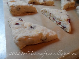 5. Place on a parchment-paper lined sheet and arrange the scones approximately two inches from one another. Bake for about 15 minutes, or until golden on top.