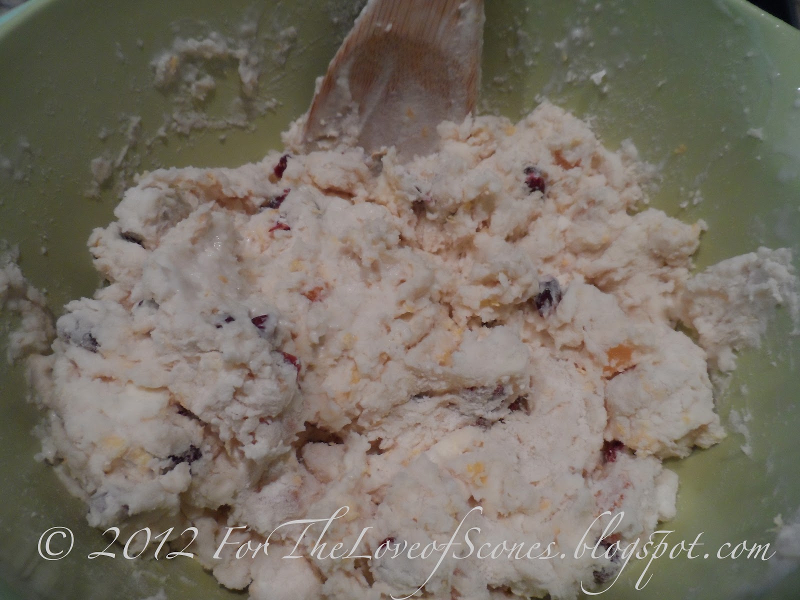 3. Add the apricots and cranberries and mix. Add the buttermilk and stir until just mixed (may be a little dry).