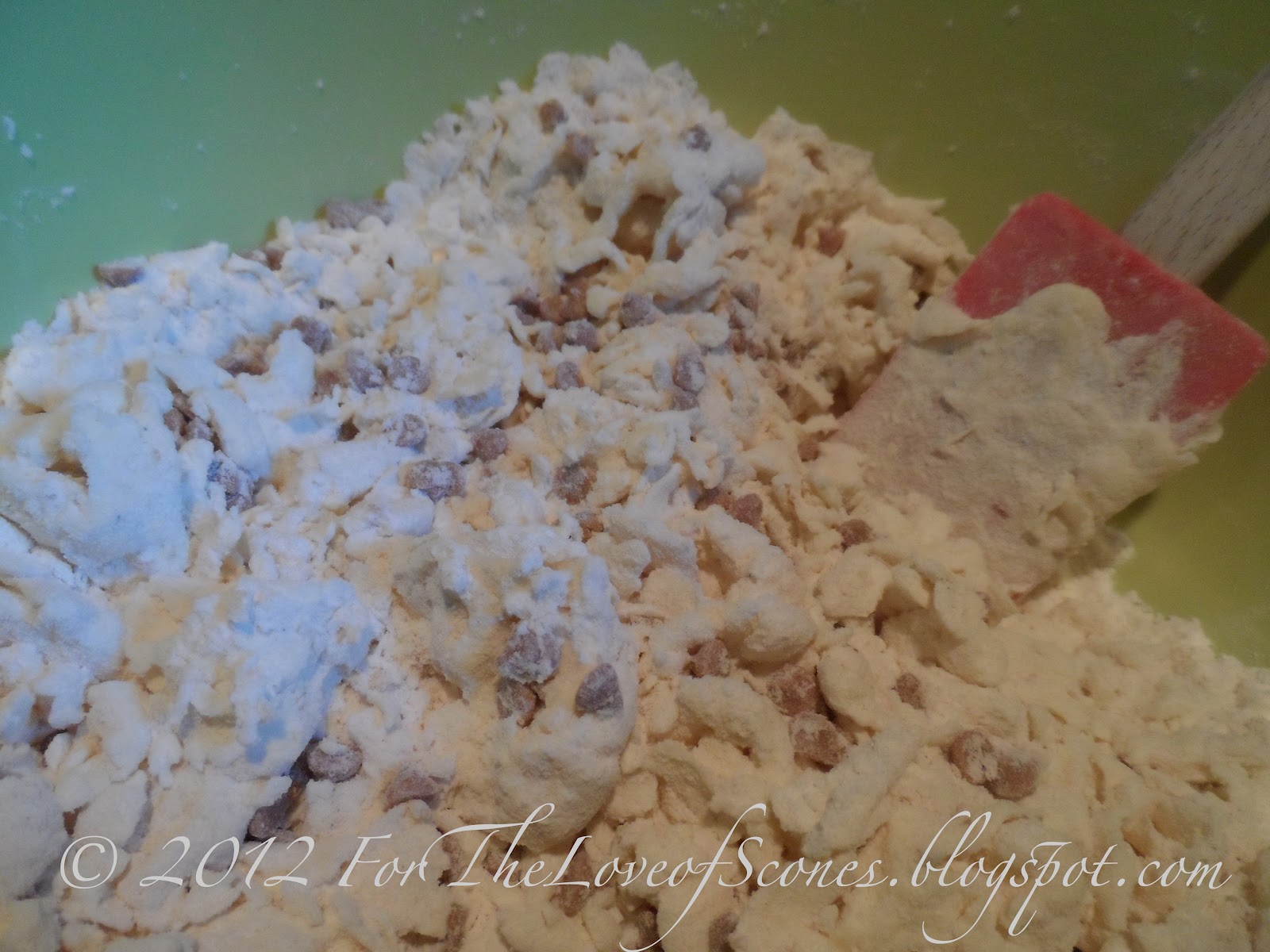 | Dry ingredients, Crème Fraîche and cinnamon chips mixed. |