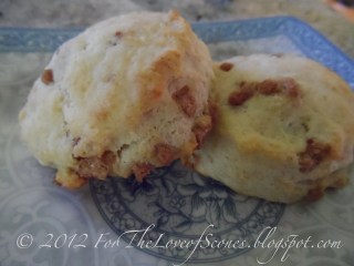 | After adding water and rolling out, the scones should hold together nicely. Roll to a 1/4-1/2 inch height and use a cookie cutter to cut out the scones, rerolling the scraps as necessary. |