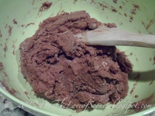 2. Combine flour, sugar, cocoa powder and whisk together until blended. Add the butter to the dry mixture and using a pastry blender, blend until it looks like coarse sand.