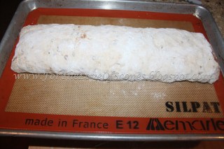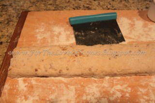 12. Stretch the dough out along the workspace until it is about 1 to 1-1/4 inches high and about 3-4 inches wide.