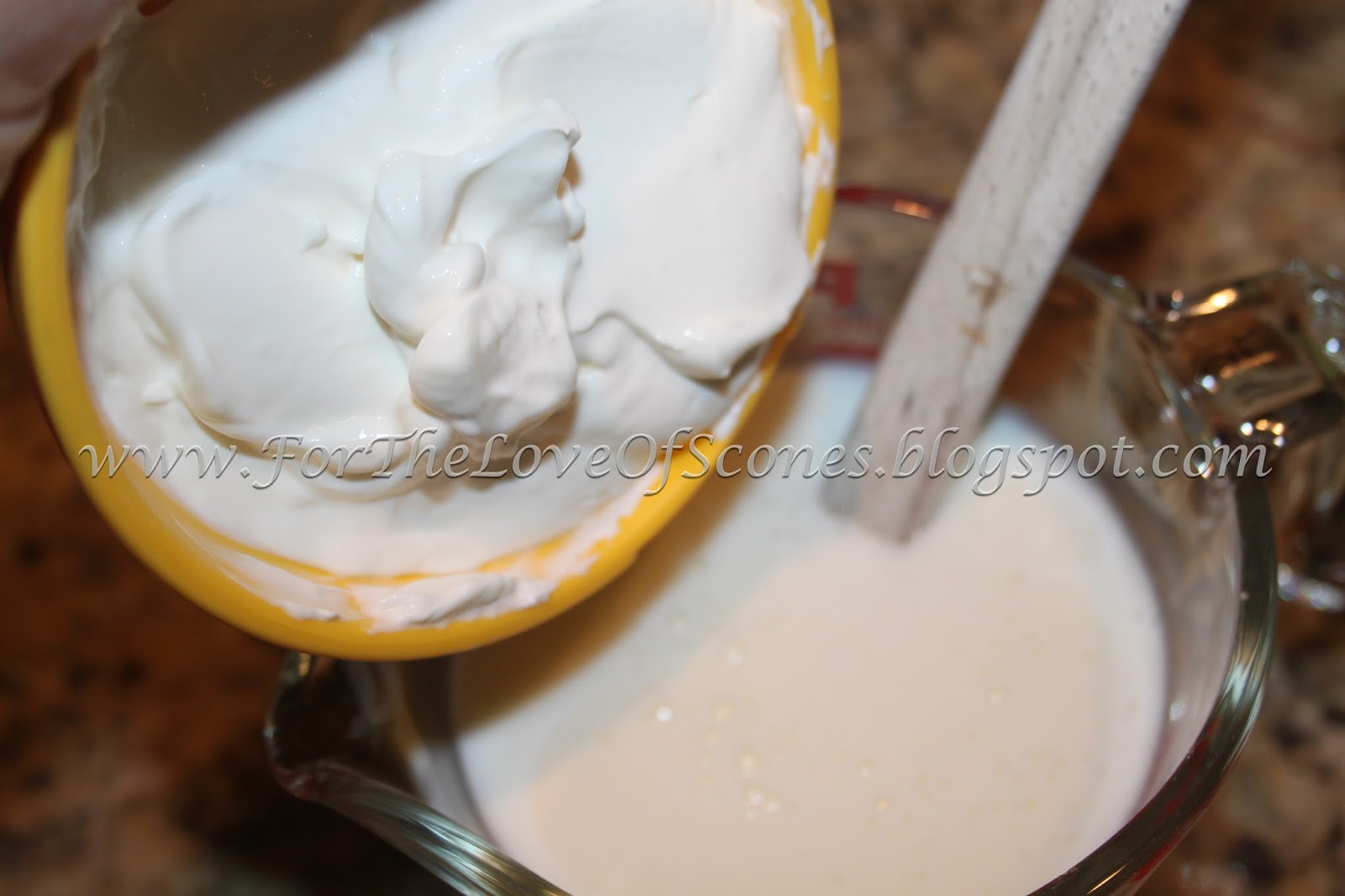 3. In a two-cup measuring cup or medium sized bowl, combine buttermilk and sour cream and whisk until smooth.