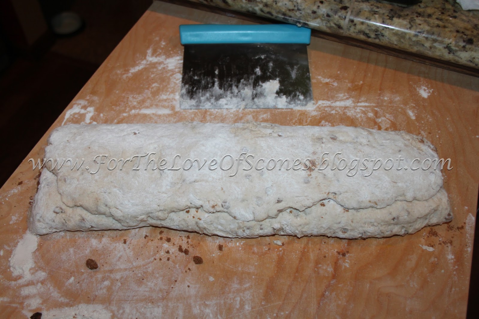 13. With a sharp knife or your bench scraper, cut the dough into even rectangles, then cut those rectangles into triangles. It is easiest to first cut the dough in half, then half each half, etc. until you reach the size scone you desire. Makes 16-20 scones.