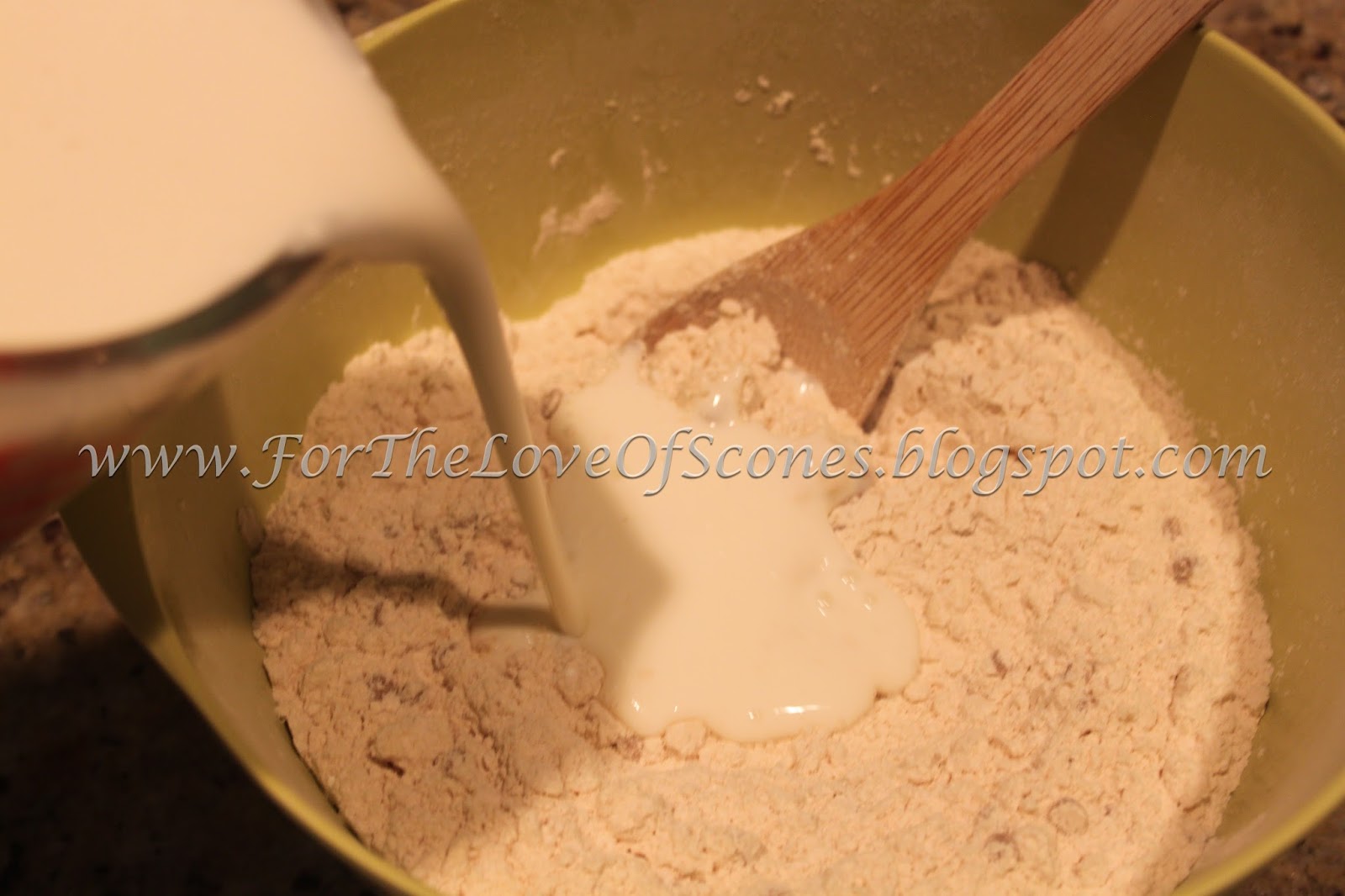 6. Add buttermilk sour cream mixture to the flour mixture and stir to combine, should be slightly wet dough (not sticky, but soft)