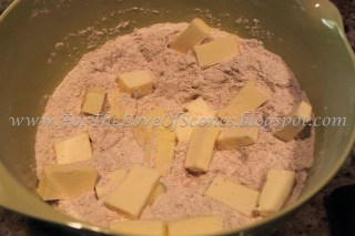 | Mix the dry ingredients, then add the chopped butter and mix well. |