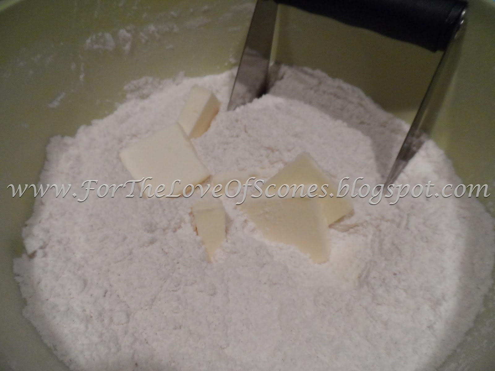 | Add butter, blend with pastry blender. |