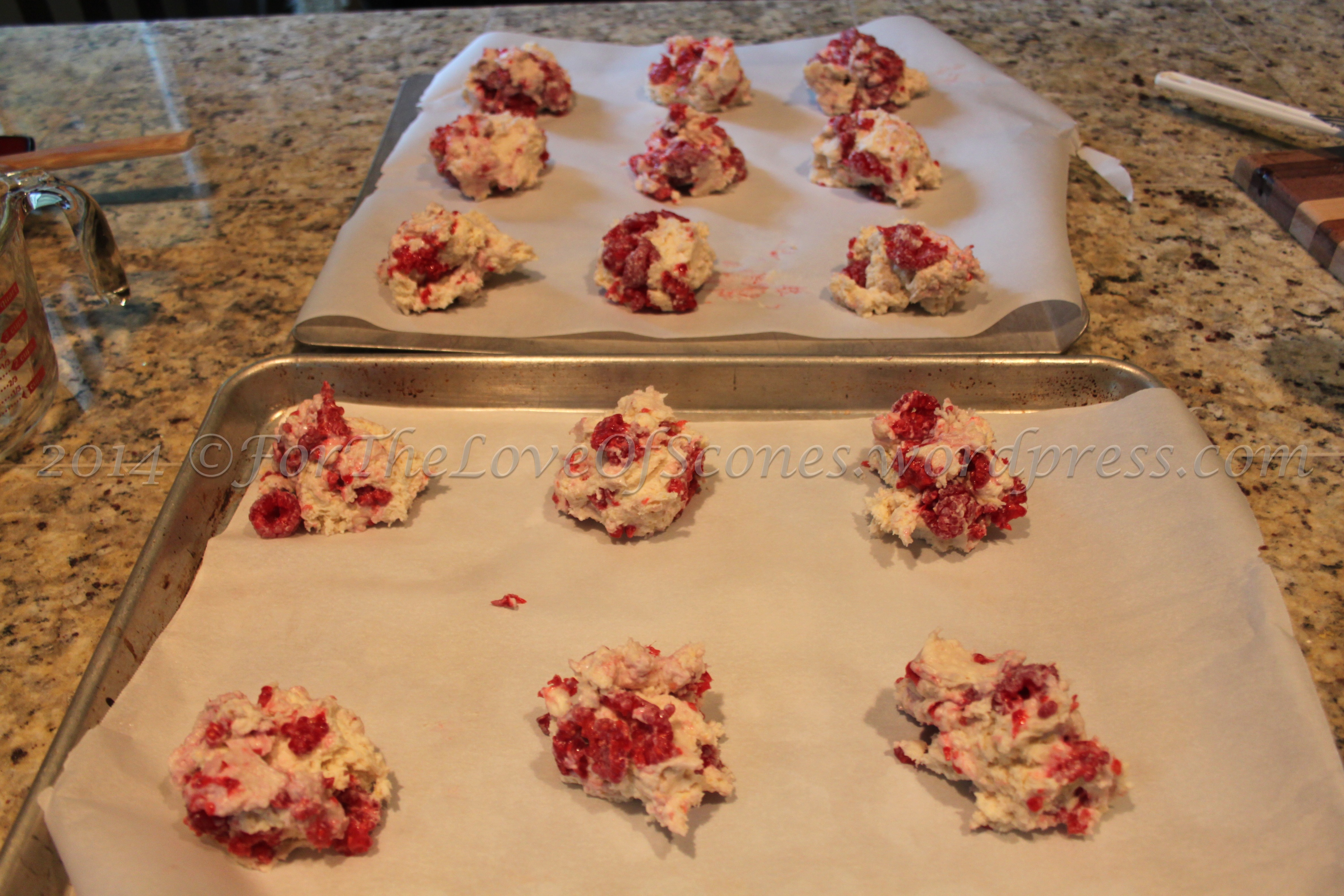 I have mixed feelings about these–they were far too soft, so they spread out despite freezing. Part of it is because I added the raspberries after the cream (which I reversed in the instructions). So my result was a great tasting scone that came out like pancakes… How disappointing.