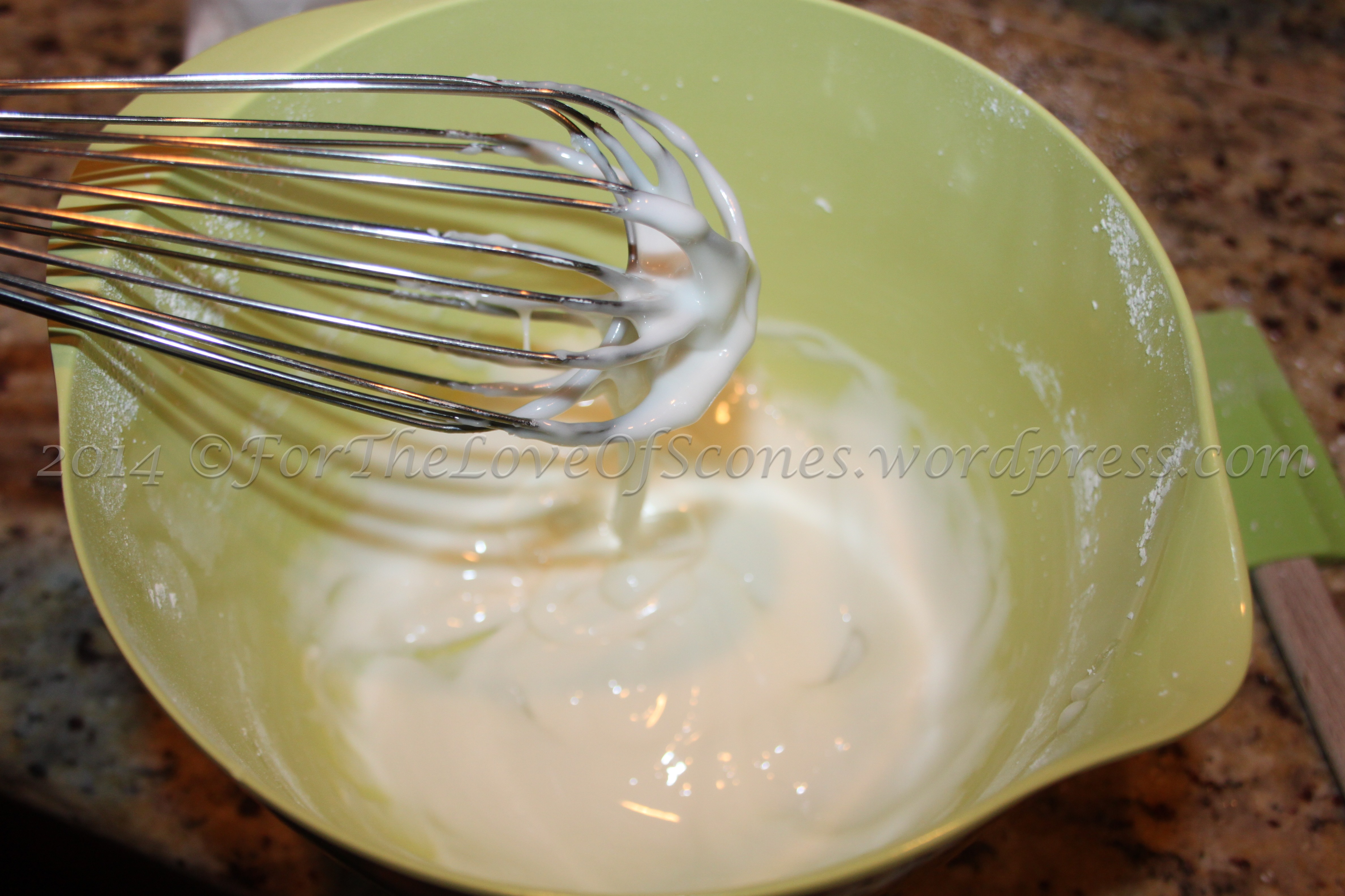 Begin by drizzling in part of the lemon juice-cream mixture. Try not to add more than needed, as the mascarpone tends to make this scone spread out more than normal in the oven. Still, you’ll want a slightly sticky dough for drop scones.