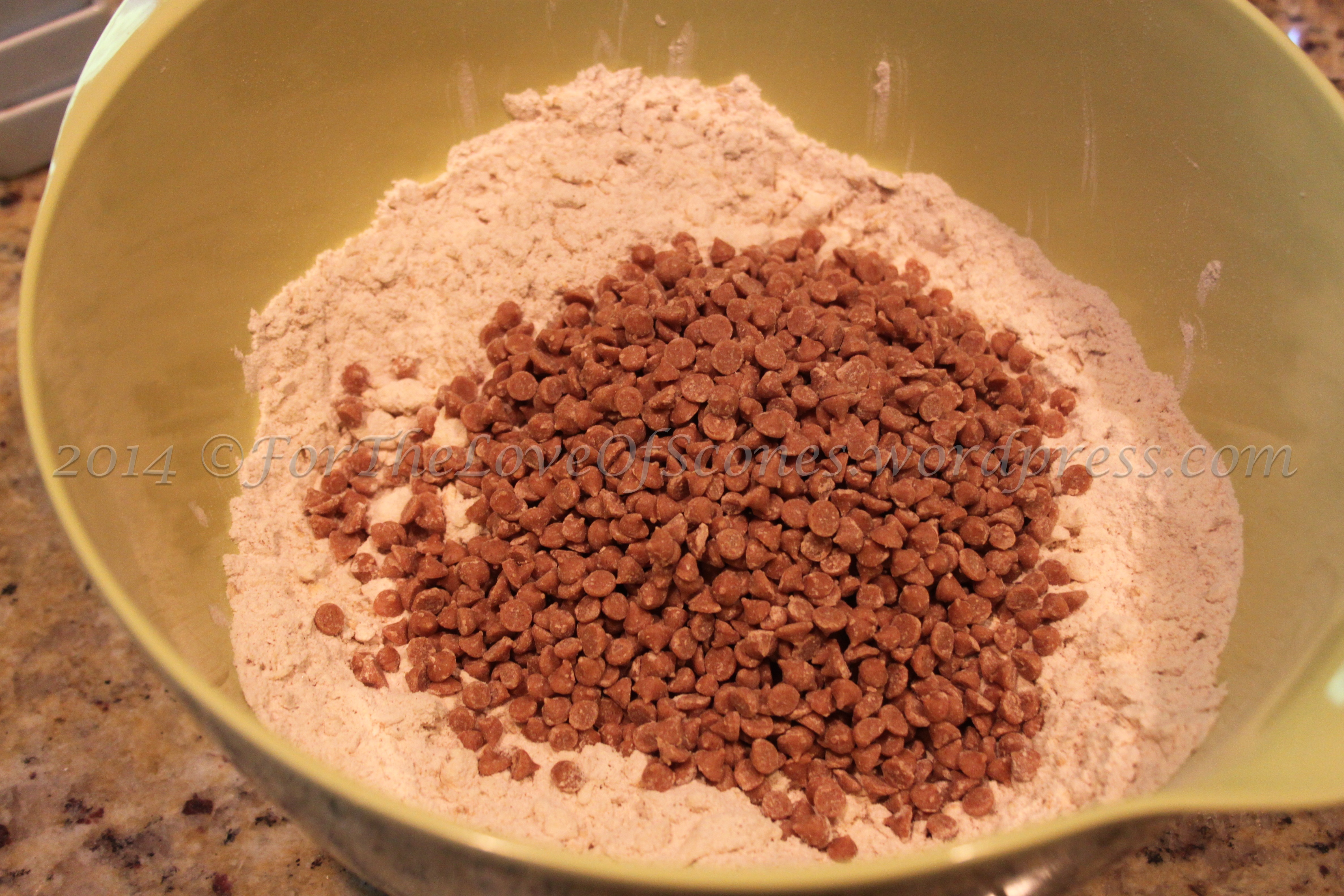 4) Add cinnamon chips to the dry mixture and toss with a wooden spoon.